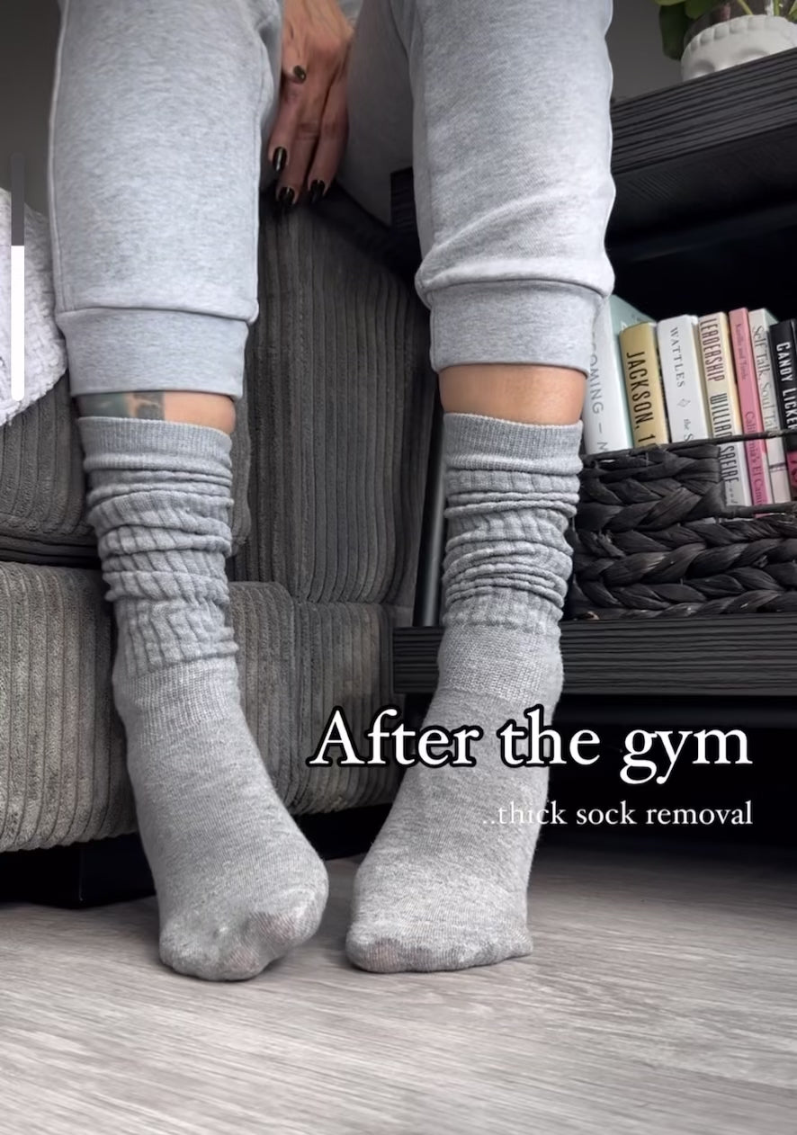 Fresh out of my workout. Watch me remove my long thick socks.. sock lines, sticky sweaty toes and joi. Everything you need to get you right. Imagine how clammy they would feel on your face!